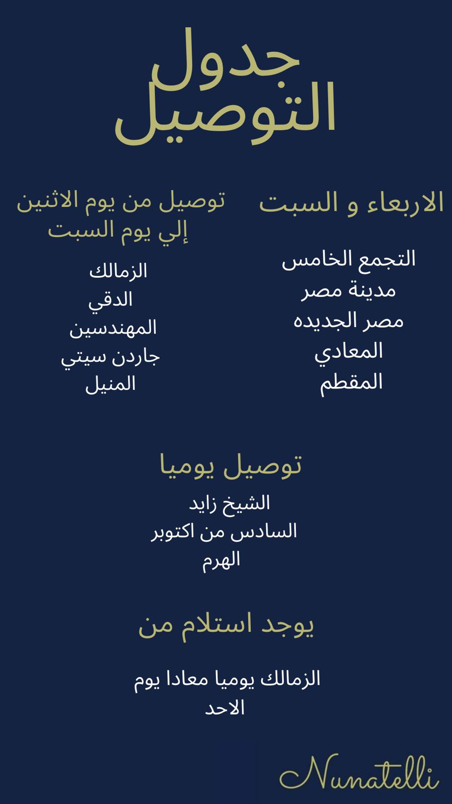 نقدم التوصيل في نفس اليوم **فقط في مدينة 6 أكتوبر** للطلبات التي يتم إجراؤها قبل الساعة 12 ظهرًا.