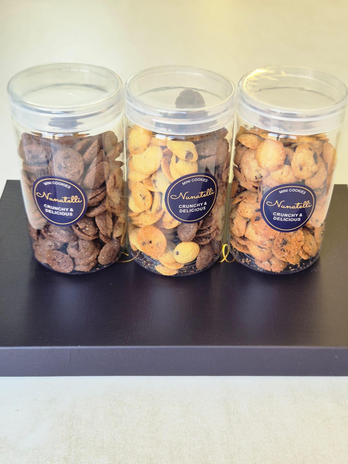 Enjoy our signature crunchy Nunatelli mini cookies, packed fresh in individual jars. Please note that the price is per jar. Choose from three delicious options: rich chocolate, smooth vanilla, or a delightful mix of both chocolate and vanilla.